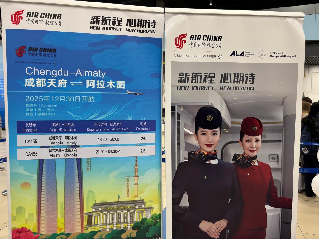 В преддверие Нового года международная авиакомпания Air China провела торжественную церемонию открытия первого прямого рейса по маршруту Алматы — Чэнду. Это уже второе новое направление, открытое авиаперевозчиком в 2025 году, что подчёркивает активное развитие компании на казахстанском направлении.