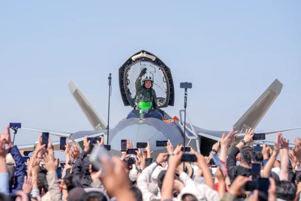 23 сентября, пилот истребителя J-20 после завершения демонстрационного маневренного полета приветствует зрителей взмахом руки. С 19 по 23 сентября 2025 года в Чанчуне (провинция Цзилинь) прошли Дни открытых дверей ВВС НОАК и Чанчуньский авиасалон 2025 года. Мероприятие прошло под девизом «Мечтая о небе и космосе — побеждать будущее» и в различных формах, включая летные выступления, демонстрацию техники и интерактивные мероприятия, всесторонне показало историческое наследие и новые достижения модернизации ВВС Китая.