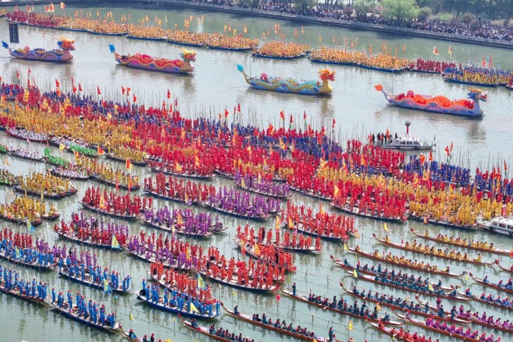 6 апреля, Тайчжоу, провинция Цзянсу: на территории национального водно-болотного парка озера Цинху прошёл фестиваль лодок Цинтун 2025 года. Более 500 лодок и свыше 10000 участников воссоздали грандиозную сцену «тысячи шестов и вёсел, шумящих на озере». История фестиваля уходит во времена Южной Сун.