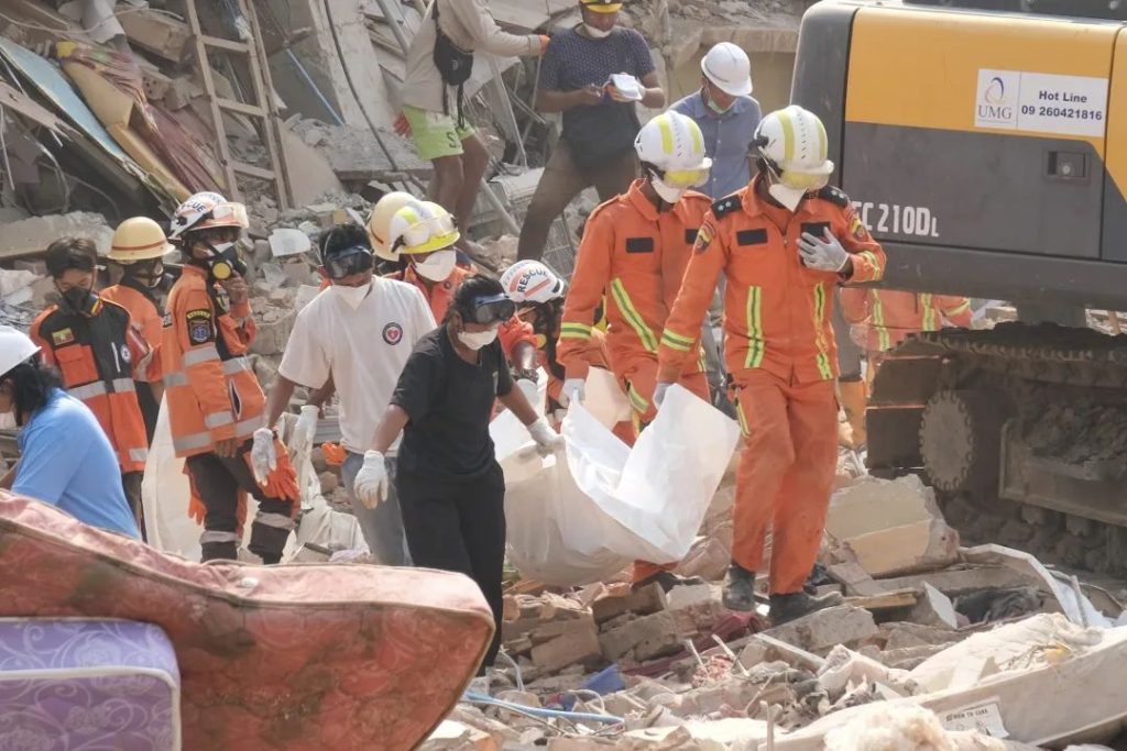 1 апреля по местному времени в пострадавшем от землетрясения районе Мандалай в Мьянме продолжалась спасательная операция в жилом комплексе Sky Apartment.