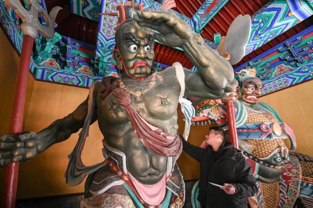 10 декабря, храм Тяньхоу в Тяньцзине: мастера декоративно-прикладного искусства из мастерской национального нематериального культурного наследия «Тяньцзиньские цветные глиняные фигурки Нирэнь Чжан» проводят реставрацию статуй в храме. Недавно храм Тяньхоу начал крупнейшие по масштабу и охвату реставрационные работы с момента своего восстановления и открытия в 1986 году. Работы проводятся по принципу «реставрировать, сохраняя первоначальный облик» и охватывают 46 статуй в 12 залах храма с целью сохранения их исторического колорита и художественной сущности.