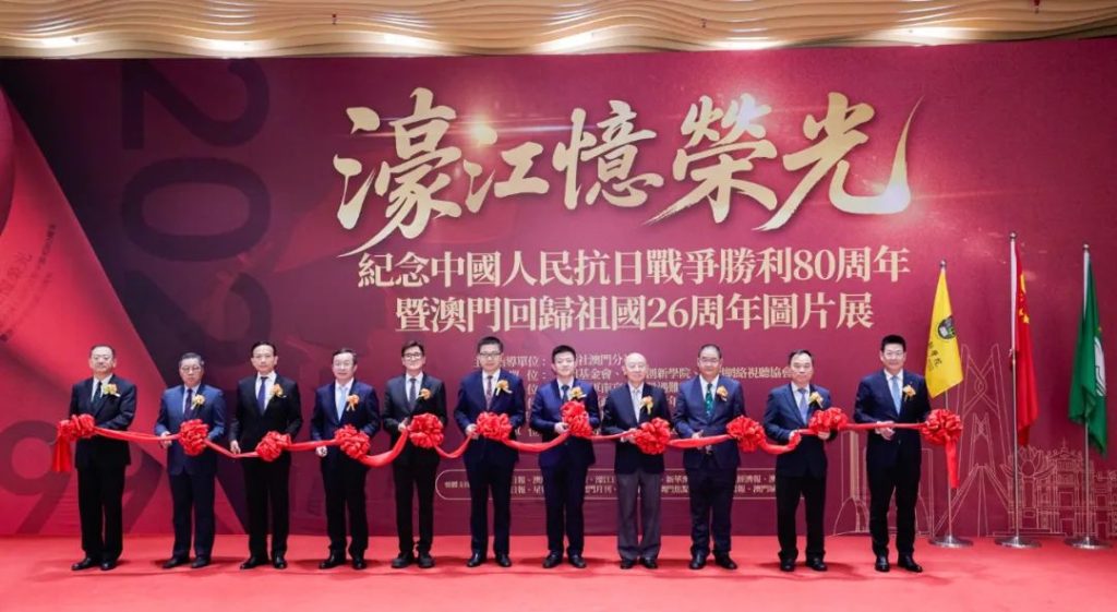 21 декабря днем, в новом кампусе Китайско-Западного инновационного института в Макао открылась фотовыставка «Память славы Хаоцзяна — к 80-летию Победы китайского народа в Войне сопротивления японской агрессии и 26-летию возвращения Макао Родине». На фото: министр департамента пропаганды и культуры Канцелярии Связного представительства Центрального народного правительства КНР в САР Макао Вань Сучэн (в центре), исполняющий обязанности директора Управления культуры правительства САР Макао Чжэн Цзимин (пятый слева), руководитель департамента новостей и публичной дипломатии Канцелярии МИД КНР в САР Макао Гао Юань (пятый справа), руководителя China News Service Чэнь Лужун (четвертый слева) и другие почетные гости перерезают ленточку на открытии выставки.