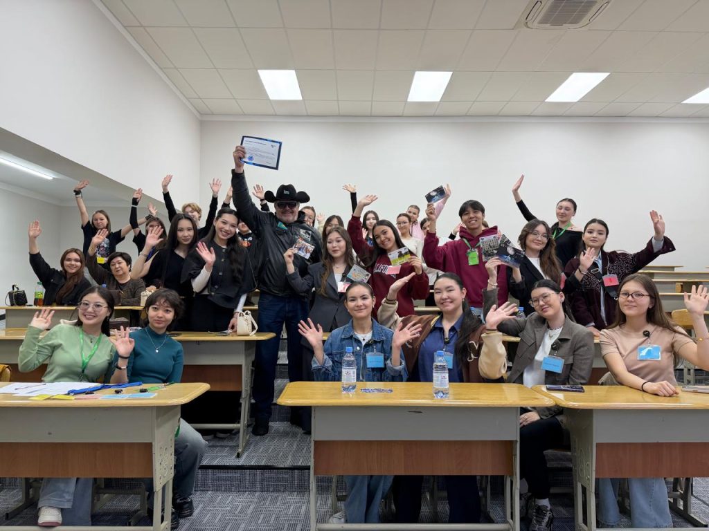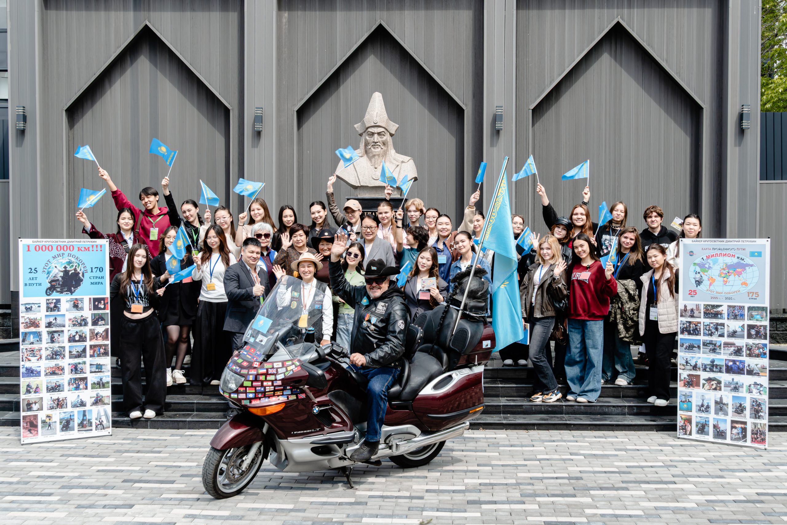 В Казахском университете международных отношений и мировых языков имени Абылай хана прошла необычная встреча: легендарный кругосветный путешественник Дмитрий Петрухин попал в окружение юных журналистов.