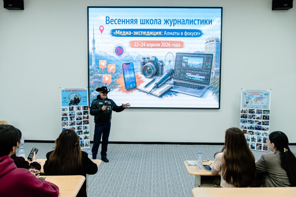 Весенняя школа журналистики под названием «Медиа-Экспедиция: Алматы в фокусе» прошла с 22 по 24 апреля 2026 года в стенах КазУМОиМЯ имени Абылай хана. Программа школы была максимально насыщенной: от торжественного открытия с участием известной журналистки и продюсера Дины Толепберген до полевых выездов в знаковые локации города.