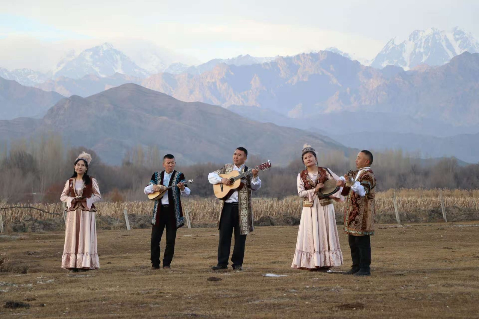 50-летний Ербол Харидан перебирает струны домбры, рядом спутники подключаются, играя на гитаре, ударяя в бубен и другие инструменты, мелодия льётся протяжно у подножия Тянь-Шаня, а собравшиеся жители деревни хлопают и одобряют.