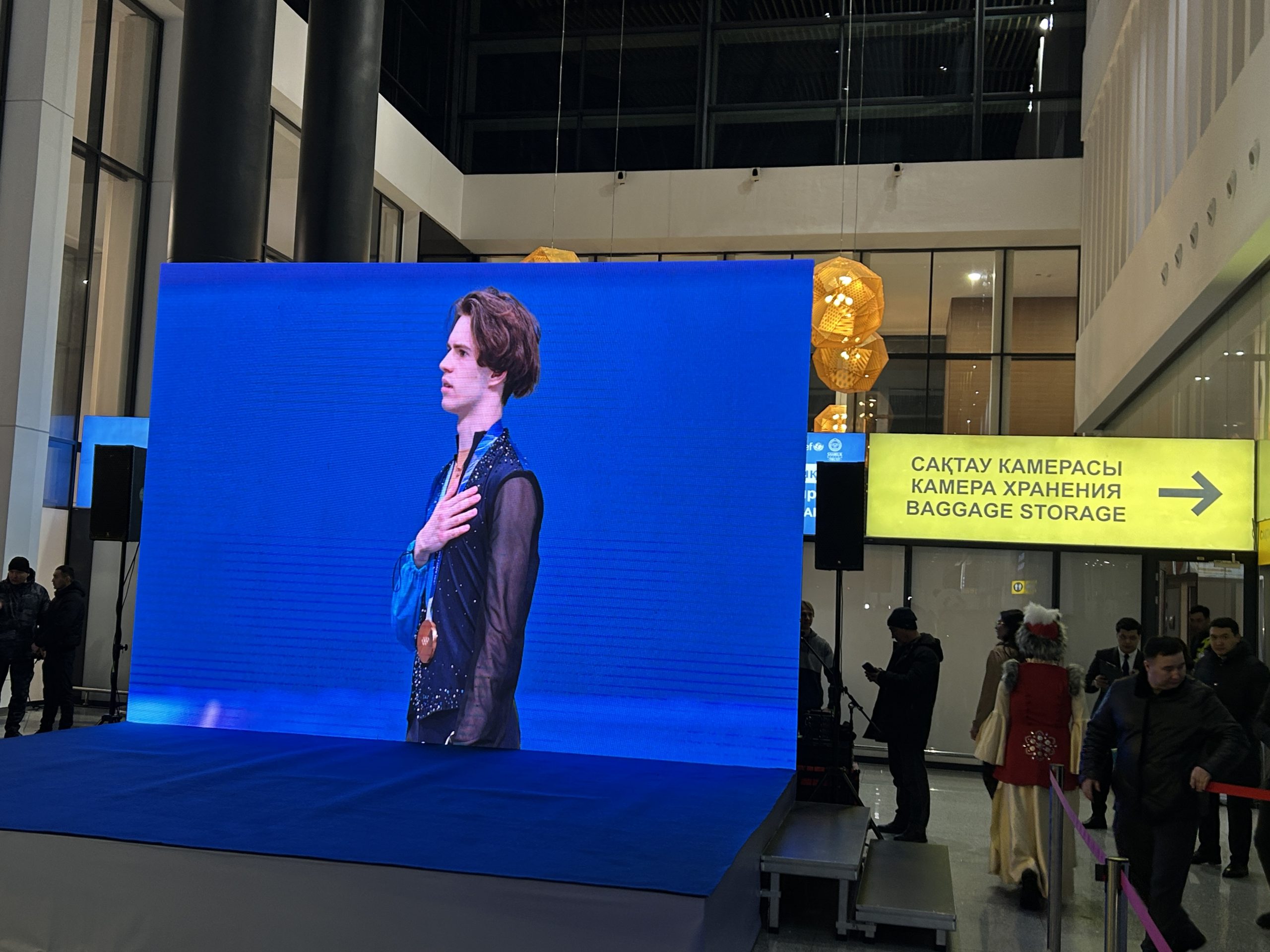На встречу собрались болельщики, родственники, друзья, представители спортивного сообщества и СМИ. На большом лед-экране транслировали программу Шайдорова, с которой он выступал в Милане, показали видеоролик с кадрами его детских тренировок, был подготовлен пьедестал. Весь терминал ждал появления олимпийского чемпиона — многие пришли с флагами, чтобы лично поздравить спортсменов с успешным выступлением.