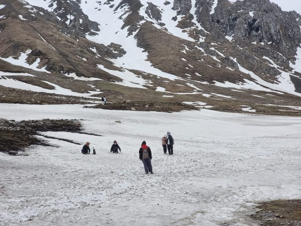 Даже летом здесь можно попасть в зиму — на высоте 3 тысяч метров лежит снег, и туристы с радостью играют в сугробах, проваливаясь по колено.
