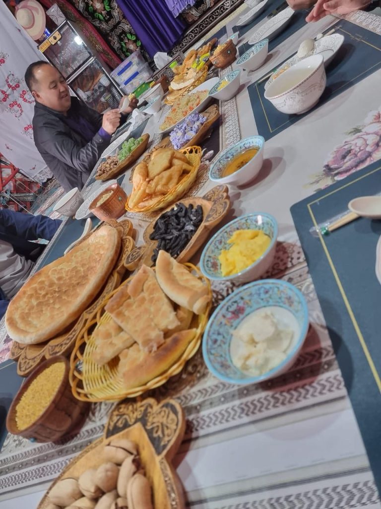 У входа в Нарат гостей встречает весёлый лепешечник. Лепешки здесь стоят от 300 до 600 тенге (около 5–10 юаней), и мимо их аромата пройти почти невозможно. В казахских юртах вас угостят баурсаками, куртом, чак-чаком и обязательно напоят чаем со свежим молоком.