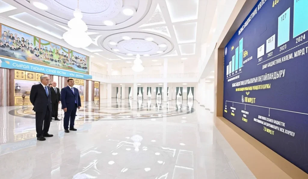 «Облыс әкімі Нұрлыбек Нәлібаев соңғы 4 жылда өңір экономикасына тартылған инвестиция көлемі 233 пайызға артқанын баяндады. Биыл 720 миллиард теңгеден астам қаржы тарту жоспарланған. Оның ішінде жеке инвестицияның үлесі 70 пайызды құрайды», — деп хабарлаған Ақорда.