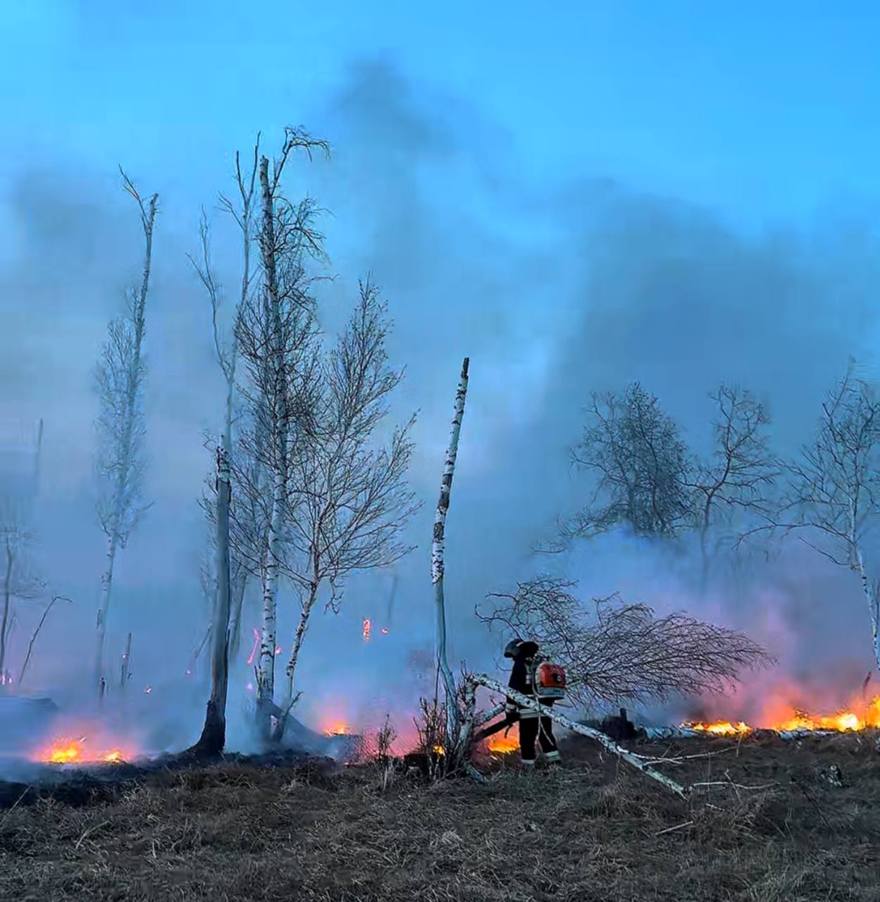 SteppeNews.kz: ТЖМ мәліметінше, Солтүстік Қазақстан облысының Есіл ауданында, Жаңалық ауылының маңында ашық аумақта құрғақ шөп жанып, кейін өрт орман шаруашылығына таралған. Алдын ала деректер бойынша, өрттің аумағы 7,7 гектарды құрады. Тілсіз жау жермен өте жылдам таралды.