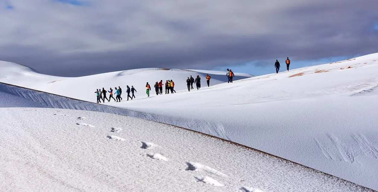 STEPPENEWS.KZ: 1979 жылдың 18 ақпанында әлемдегі ең ыстық нүктелердің бірі Сахара шөліне алғаш рет қар түсіп, адамзатты таңғалдырды. Алжирдің солтүстік-батысындағы Айн-Сефра қаласының тұрғындары таңертең оянғанда сары құм шағылдарының аппақ ұлпамен көмкерілгенін көріп, көздеріне сенбеді.