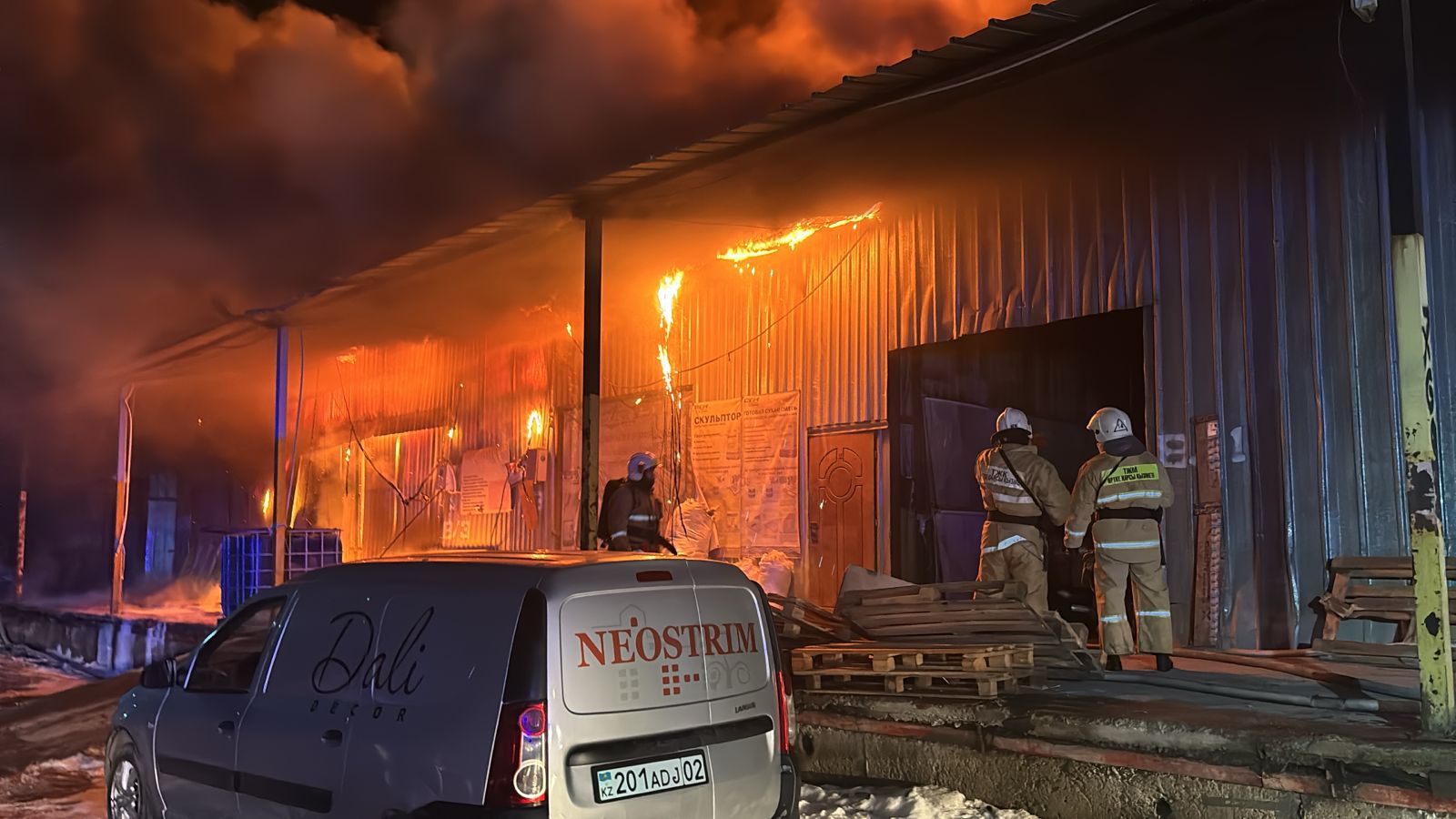 Алматыда қаланың қақ ортасында құрылыс заттарына толы қойма өртенді, деп хабарлайды QazTimes