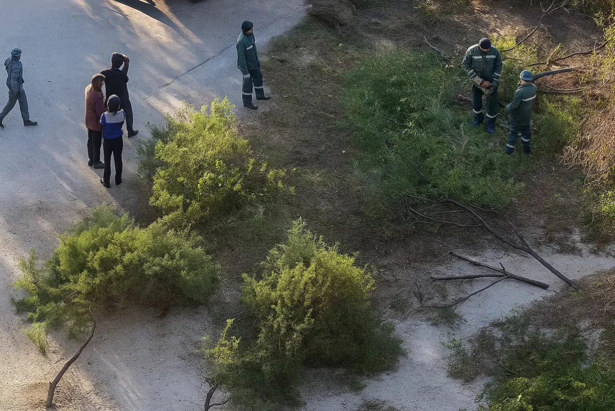 Residents of Aktau’s District 1 have expressed opposition to the tree removal near House No. 33, citing that the greenery is being cleared for a new children’s playground.