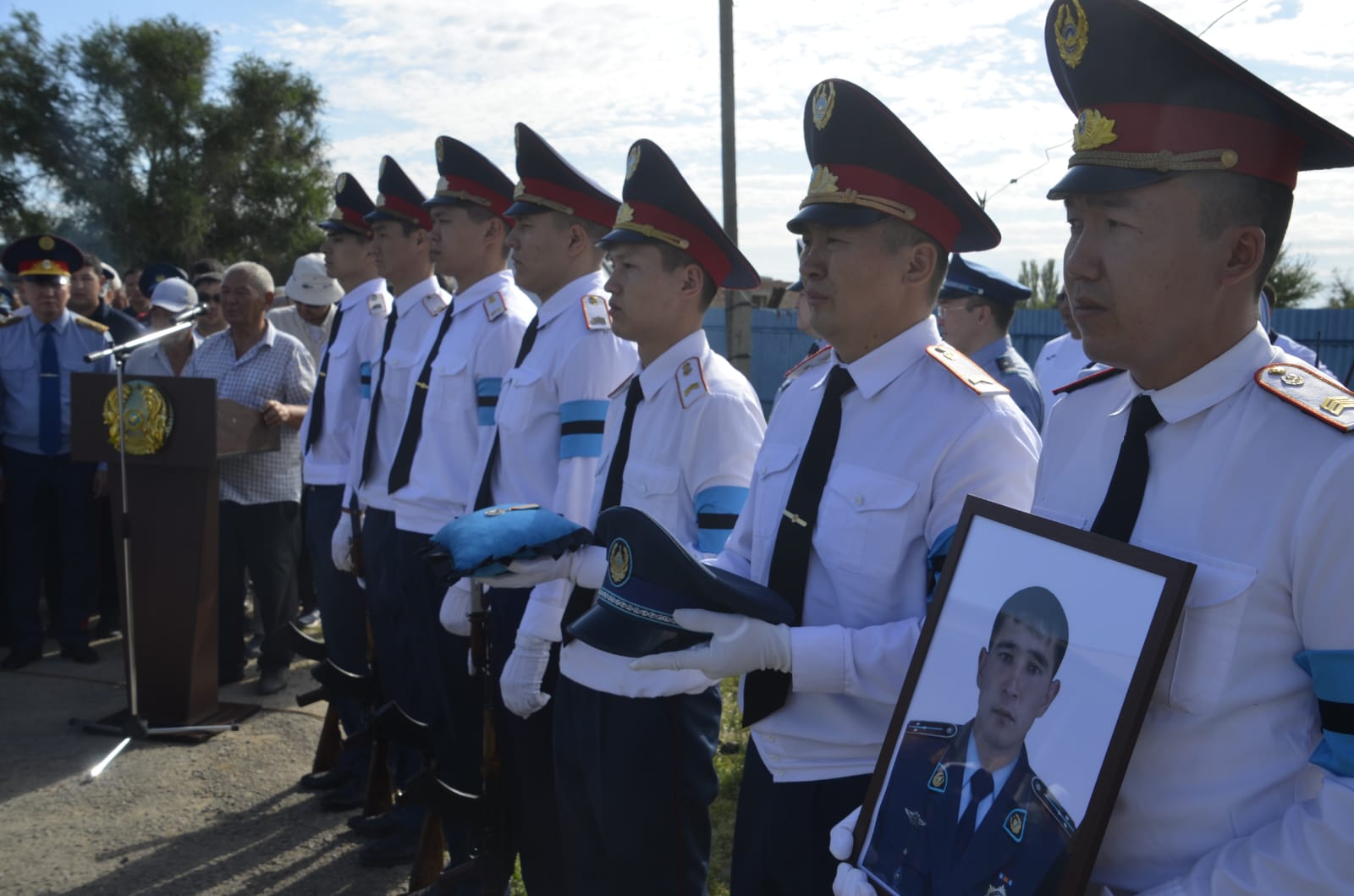 Бүгін жамбылдықтар 17 тамыз күні «Меркі-Шу-Бурылбайтал» республикалық маңызы бар тас жолында қызмет өткеру барысында жол апаты салдарынан қаза болған полиция қызметкерлері Ғалым Арыстанбаев пен Абылайхан Әбішкенді ақтық сапарға шығарып салды.