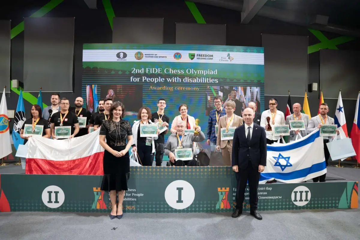 Астанада мүгедектігі бар шахматшыларға арналған Екінші шахмат Олимпиадасы мәресіне жетті. Оған 29 елден 34 команда қатысып, есту, көру және тірек-қимыл жүйесі бұзылған спортшылар «4+4» форматында бақ сынады.