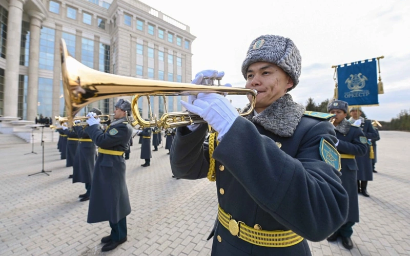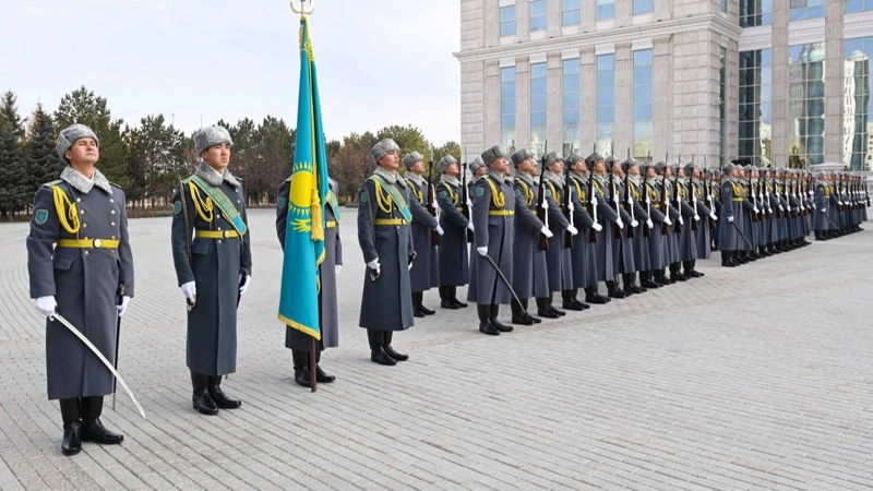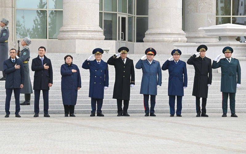 Құрмет қарауылының бастығы президентке рапорт берді. Содан кейін еліміздің Мемлекеттік туы көтеріліп, әнұраны орындалды.