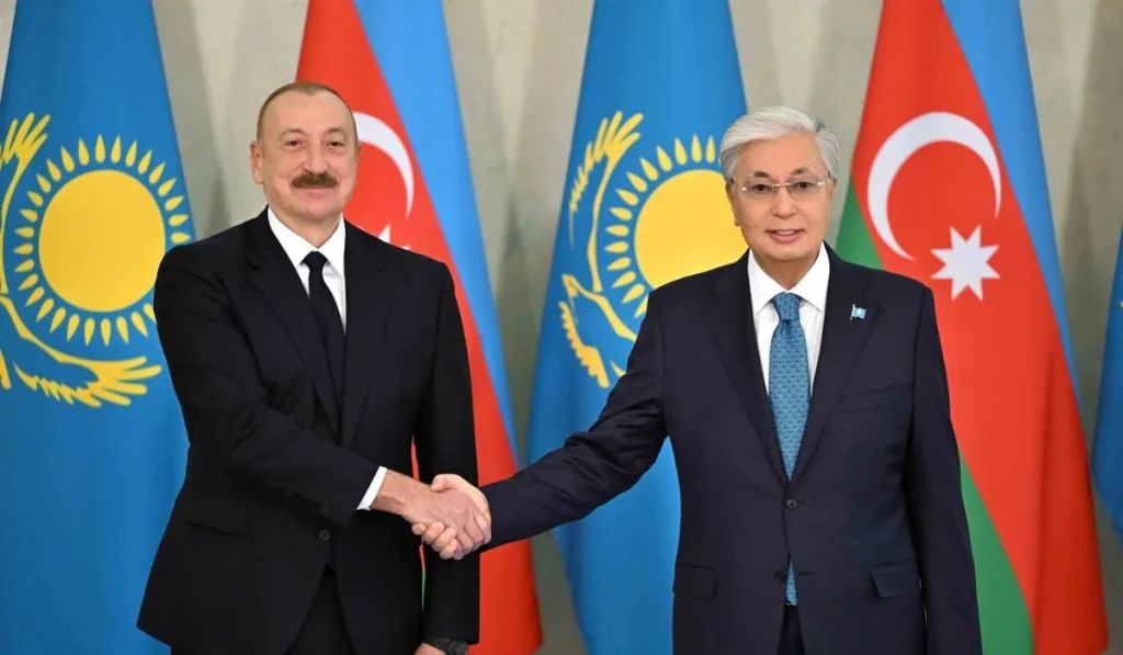 Астанаға мемлекеттік сапармен келген Әзербайжан президенті Ильхам Әлиевпен кездескен Мемлекет басшысы Қасым-Жомарт Тоқаев екі ел арасындағы стратегиялық серіктестікті тереңдетудің маңыздылығын атап өтті.