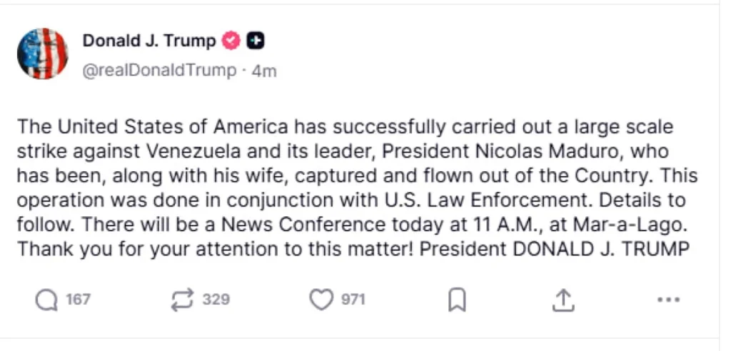 STEPPENEWS.KZ: 2026 жылдың 3 қаңтарында Венесуэла президенті Николас Мадуро АҚШ арнайы қызметтері жүргізген әскери операция барысында ұсталды. Ақпаратқа сәйкес, ол жұбайы Силия Флореспен бірге елден шығарылып, АҚШ аумағына жеткізілген. Бұл туралы АҚШ президенті Дональд Трамп әлеуметтік парақшасында жариялады.