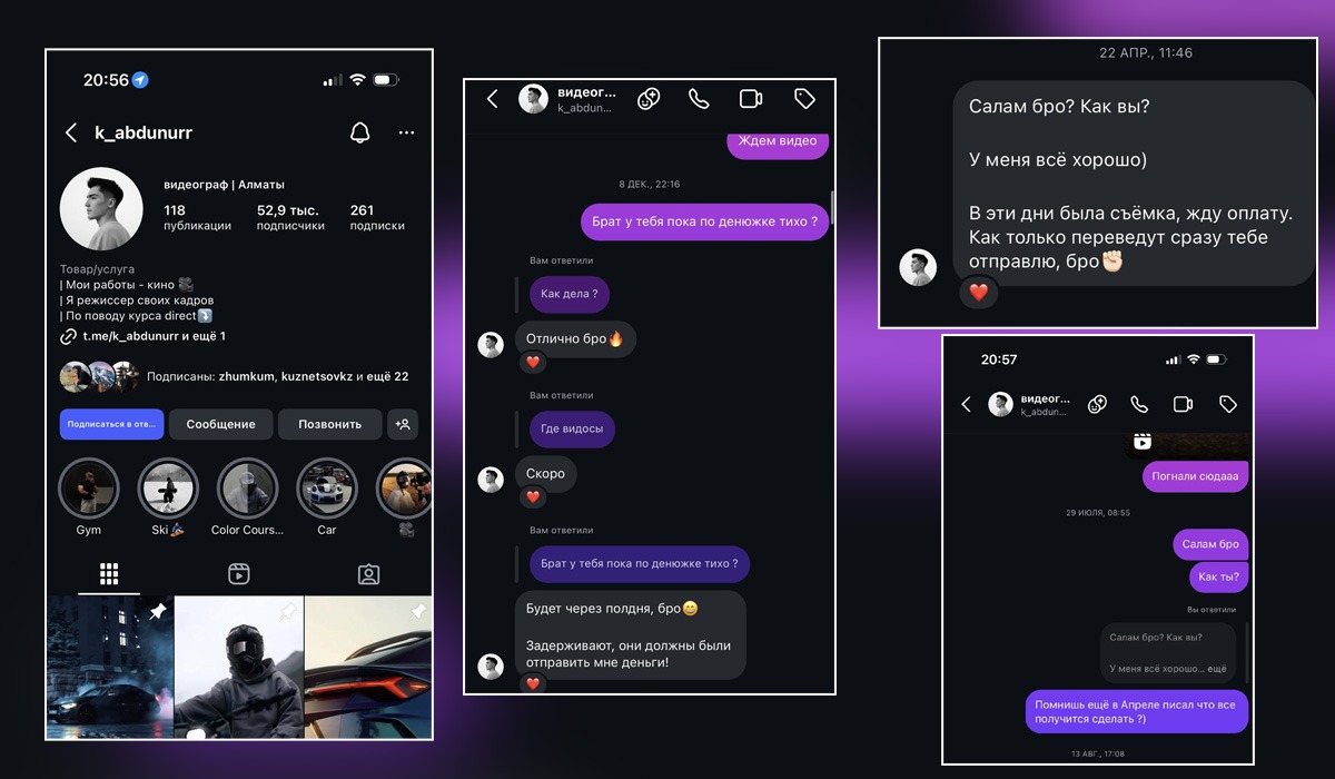 Ол өзінің әлеуметтік желідегі парақшасында видеограф әріптесінің Сәкен Қағаровтан камера сатып алып, бірақ ақшасын өтемей кеткенін жазды.