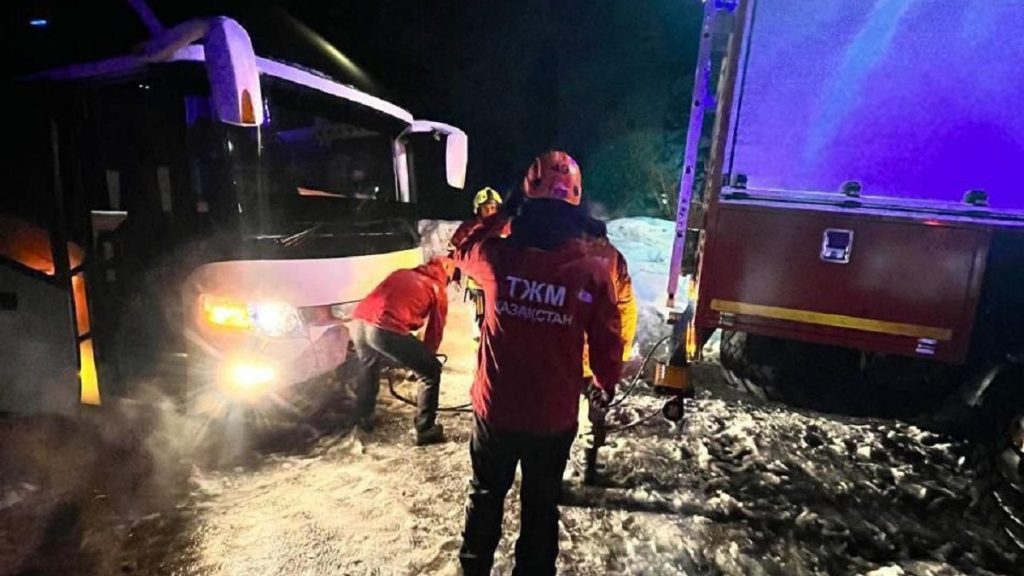 ```php Автобус застрял на подъеме к «Медеу» в Алматы