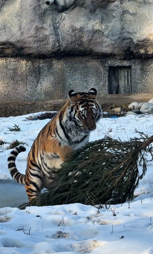 Собранные деревья стали не только лакомством для некоторых видов копытных, но и использовались в качестве «игрушек» для обезьян, тигров, медведей и леопардов. Кроме того, хвойные деревья и ветки послужили мягкой подстилкой для харз, хомячков, ежей и дикобразов.