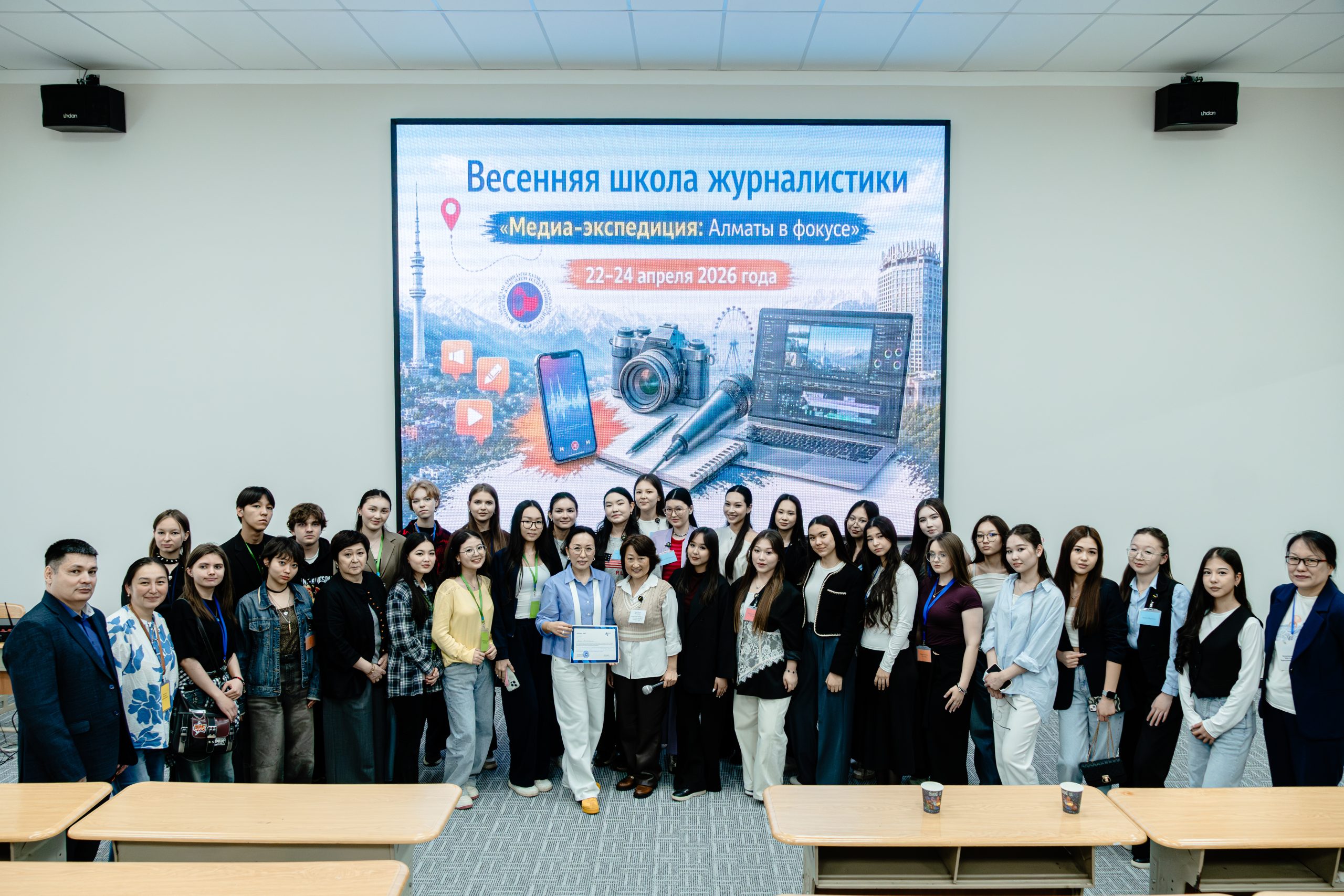 Участниками школы стали более 30 амбициозных абитуриентов — учеников 11-х классов школ из Алматы и Алматинской области. Эти ребята уже сегодня решили связать свою жизнь с миром информации и коммуникаций, выбрав один из ведущих гуманитарных вузов страны для своего первого профессионального погружения.