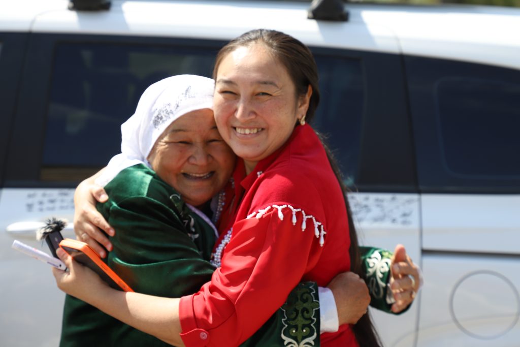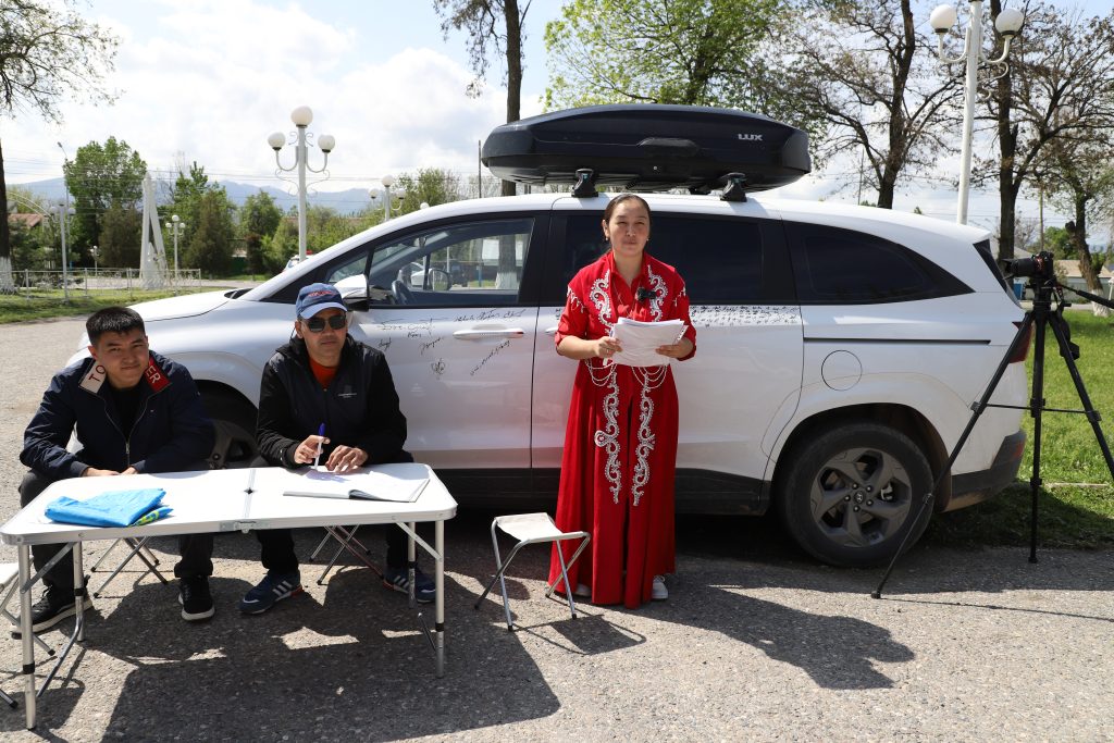 Атмосфера была пропитана невероятным единством. Особенно запомнился момент, когда к машине подошла местная жительница — известная в районе поэтесса и писательница Танымкуль Жайлаукызы. Она оставила на машине свой автограф и обняла автора проекта Мадину Ашилову.