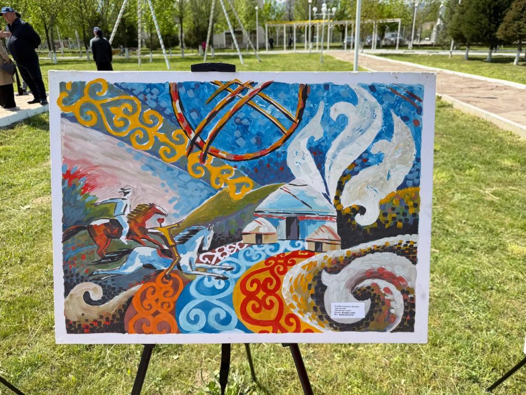 Особое внимание уделили подрастающему поколению. Маленькие художники со всего региона соревновались в мастерстве, изображая символы Казахстана.