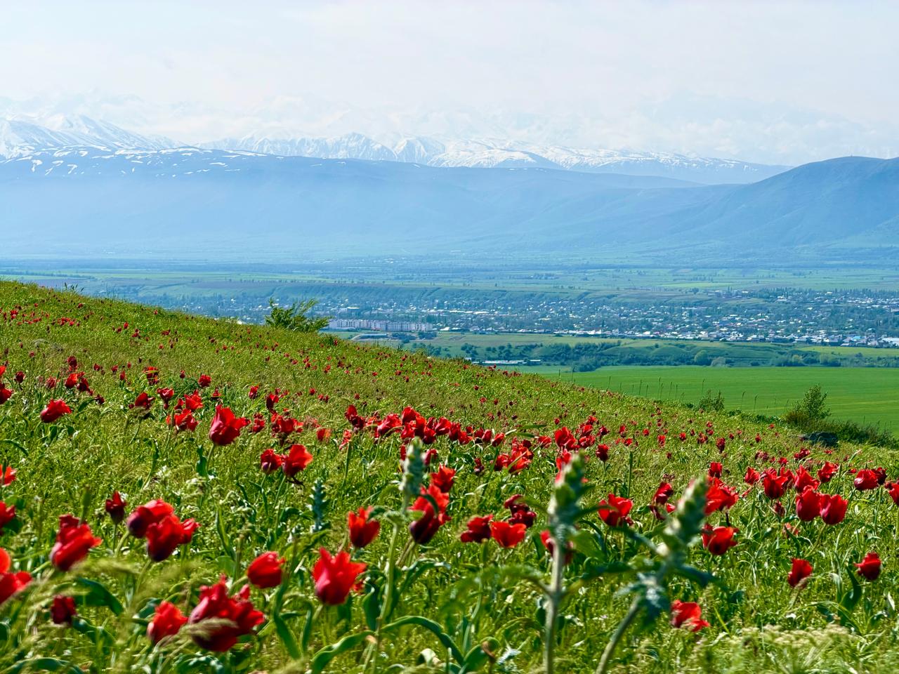 В 2026 году весна была милостива: склоны гор окрасились в такой плотный алый цвет, что издалека казалось, будто по холмам течет раскаленная лава. Тюльпан Грейга отличается своими уникальными пятнистыми листьями и огромными бутонами, которые могут достигать 10–12 сантиметров.