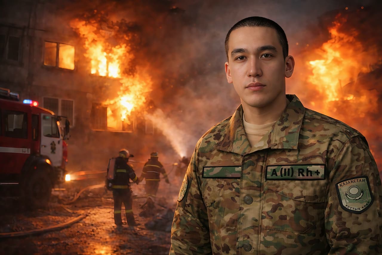 Во время пожара я услышал крики о помощи. Сразу вспомнил о соседе, который недавно перенёс инсульт и находился в беспомощном состоянии. Намочив футболку и прикрыв ею рот и нос, я вошёл в густой чёрный дым и вывел его из квартиры. Затем попытался потушить пожар, подключив шланг к уличному водопроводу, однако из-за слабого напора воды этого сделать не удалось. Вскоре прибыли пожарные и полностью ликвидировали возгорание, — рассказывает рядовой Диас Тәңірбегенов.