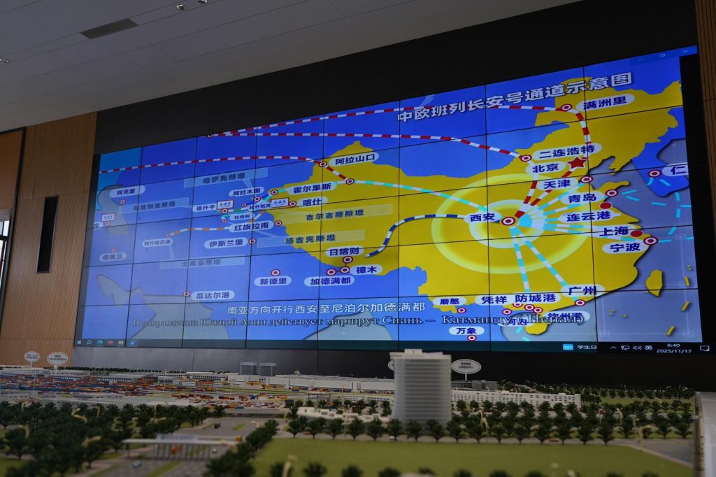 Делегация руководства АО «НК „Қазақстан темір жолы“» в рамках рабочего визита в Китай приняла участие во Втором форуме международного сотрудничества по маршруту «Китай – Европа», а также провела ряд встреч, направленных на укрепление международного партнерства и развитие транзитного потенциала Казахстана. В ходе поездки представители КТЖ посетили Сухой порт Сианя, станцию Xianguojigang и казахстанский терминал, расположенный в одном из крупнейших логистических узлов Китая. Руководство компании ознакомилось с операционной деятельностью объектов, изучило технологию обработки грузов и обсудило новые механизмы повышения эффективности грузоперевозок.