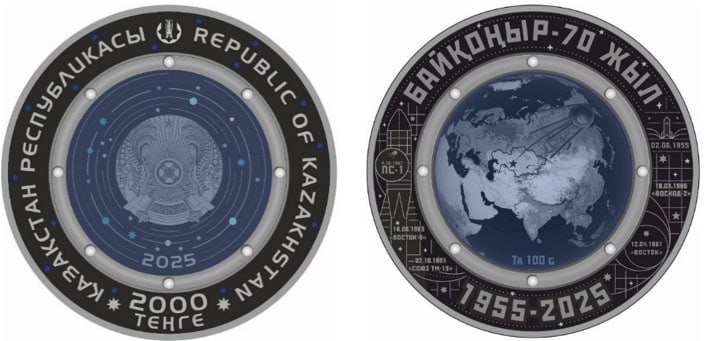 Вторая монета посвящена 70-летию космодрома Байконур.