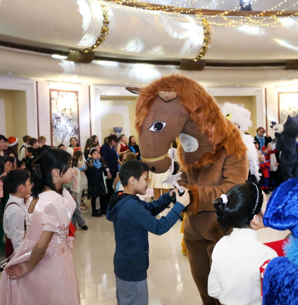 В рамках праздничных мероприятий в текущем году вниманием и новогодними подарками были охвачены 400 детей. Из них 250 детей приняли личное участие в праздничной программе во Дворце школьников. Это воспитанники Центров поддержки детей, оказавшихся в трудной жизненной ситуации № 1 и № 2, а также SOS Детской деревни города Алматы. Дети, находившиеся во временном пребывании в специализированных организациях образования и не имевшие возможности прибыть на мероприятие, получили новогодние подарки по месту своего пребывания.