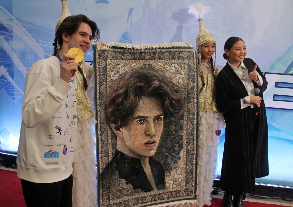 Во время торжественной встречи казахстанская художница Асель Сабыржанкызы, известная под творческим псевдонимом Ассоль, вручила спортсмену особый подарок — ковер с его портретом. Авторская работа стала символом уважения и благодарности за выдающееся достижение и вдохновение, которое чемпион подарил стране.