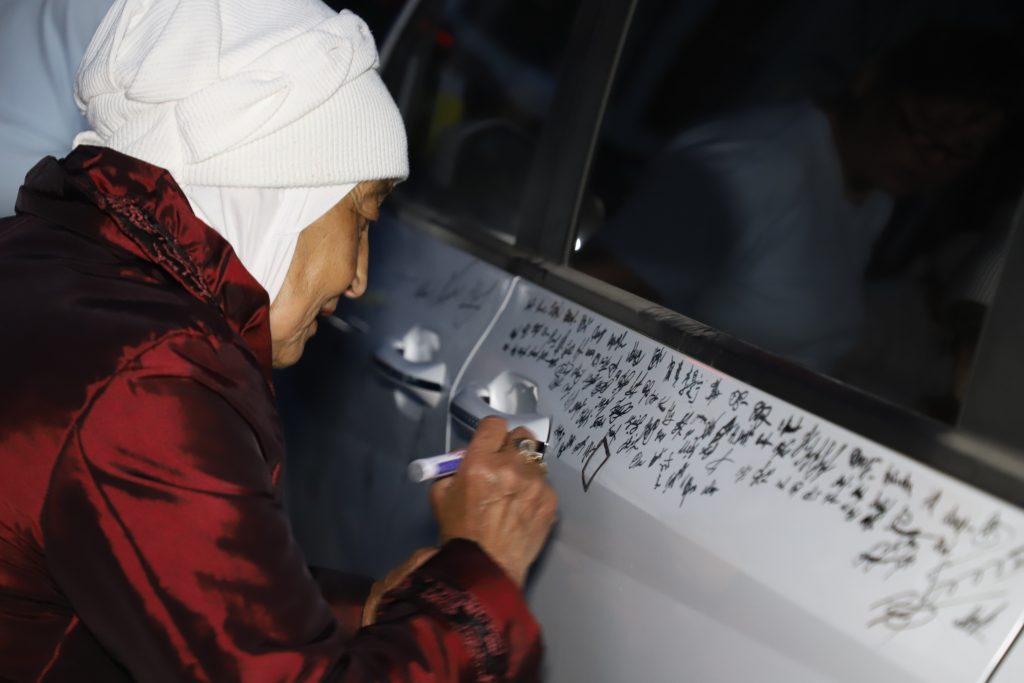 Главным героем события стал автомобиль, который буквально превратился в полотно для истории. Все присутствующие — от отдыхающих санатория до местных жителей — оставляли свои подписи прямо на кузове машины. Каждый росчерк пера стал символом поддержки, дружбы и сопричастности к большому делу.