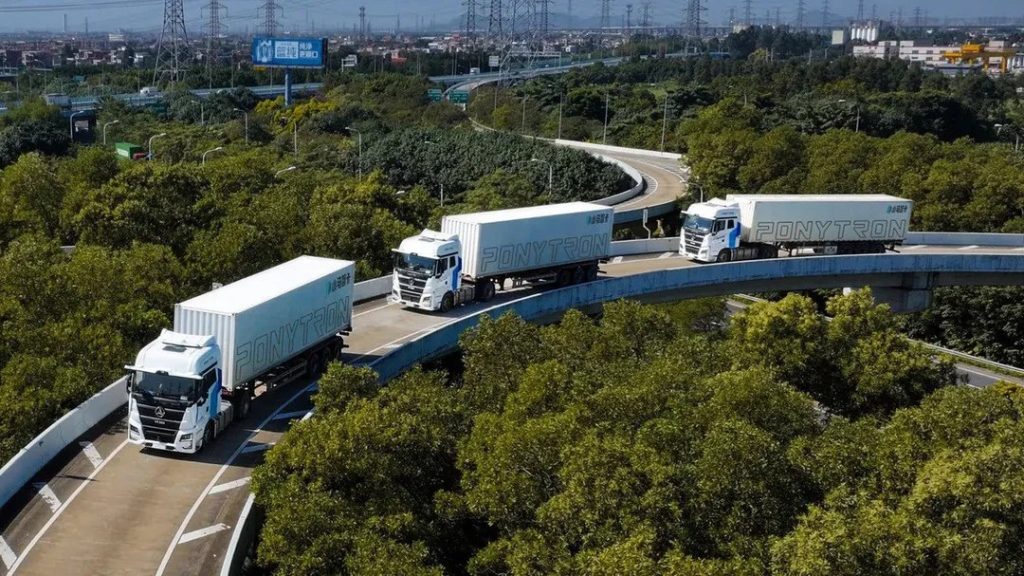 В Китае планируют запустить новый формат грузоперевозок с использованием полубеспилотных колонн. Согласно проекту, один водитель будет управлять сразу пятью грузовыми автомобилями: он будет находиться за рулем ведущего тягача, а остальные машины будут следовать за ним в автоматическом режиме на автопилоте.