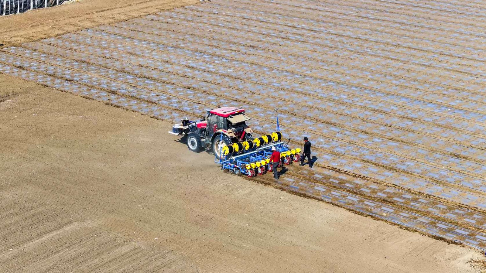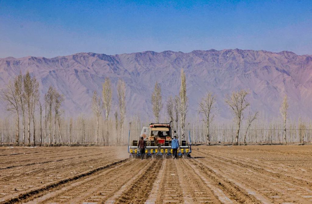 На полях Боро-Тала-Монгольского автономного округа Синьцзяна, расположенного по соседству с Казахстаном, различные виды сельскохозяйственной техники упорядоченно курсируют, эффективность механизированного посева достигает максимума. Каждая линия на бескрайних полях — это ожидание будущего урожая!