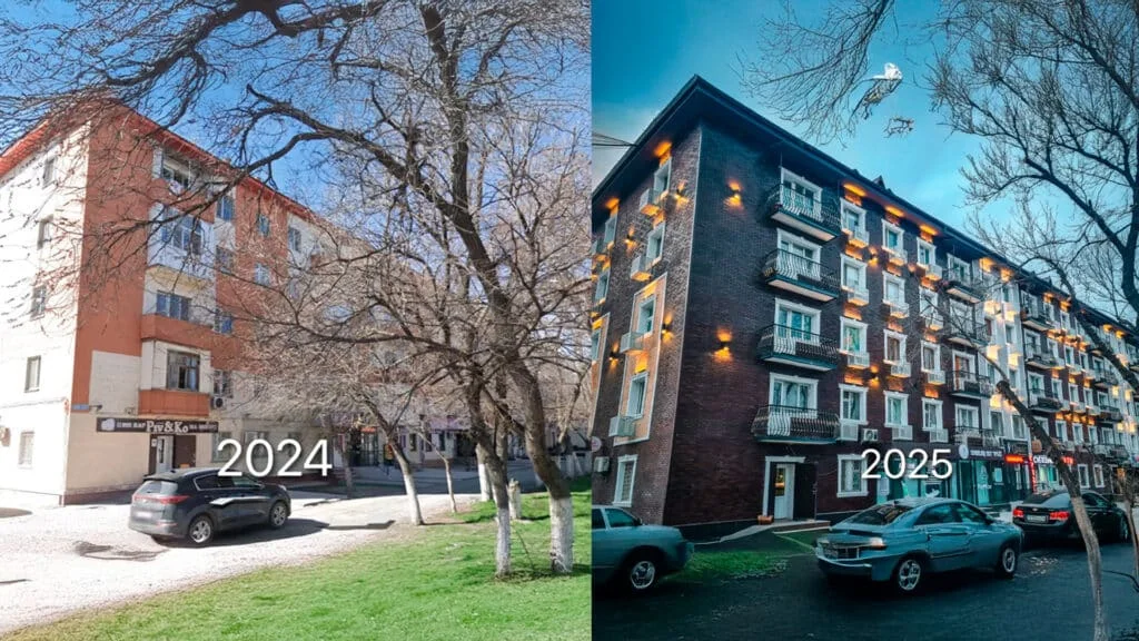 ```php В Таразе обновили фасады «хрущёвок»