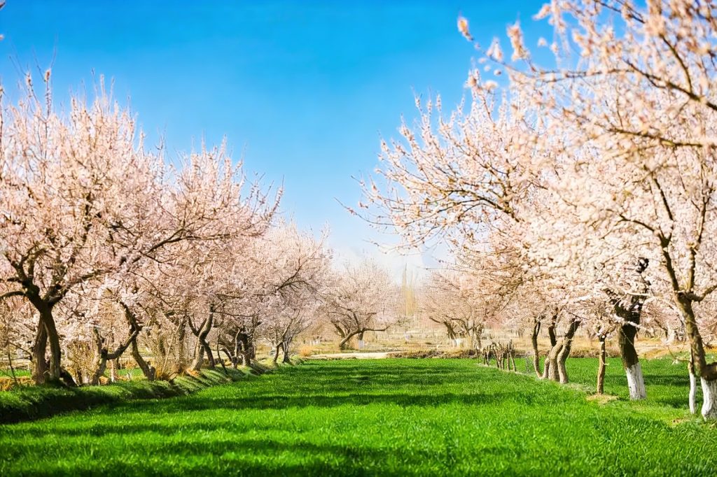В начале апреля в абрикосовых садах волости Ташмилик уезда Шуфу округа Кашгар Синьцзяна подножие Куньлуня наполняется ароматом плодов, а на ветвях цветущих абрикосов кипит весеннее оживление.