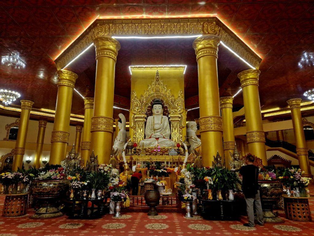 Высота пагоды превышает 70 метров, что делает ее доминантой всей окружающей местности. Вес ее позолоченного купола достигает 2,3 тонны, и в лучах солнца он сияет, видимый за многие километры, словно путеводный маяк для верующих.