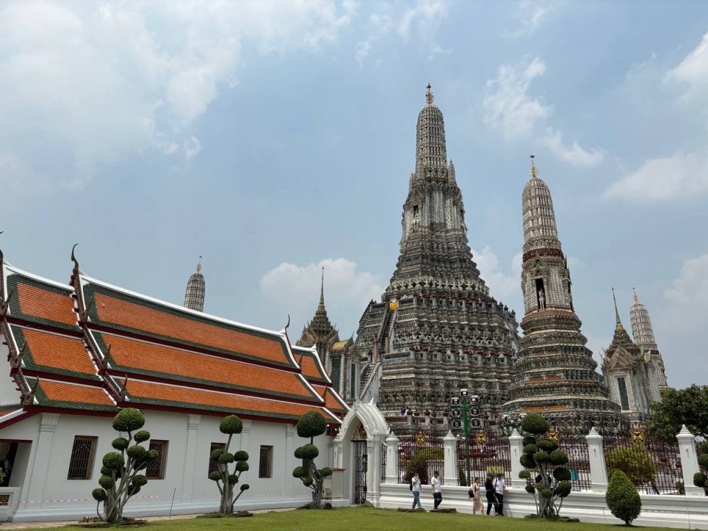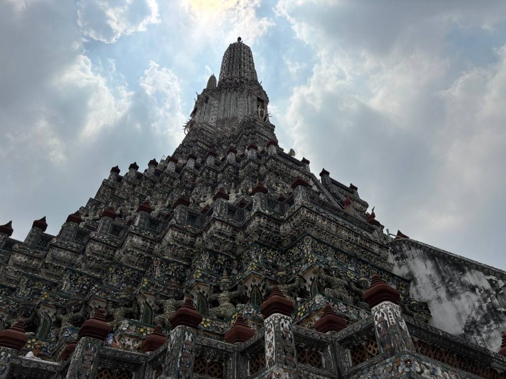 «Храм Рассвета» возвышается на западном берегу реки Чао Прайя. Его центральная башня, украшенная керамической мозаикой, поражает своей изысканностью. С вершины храма открывается потрясающий вид на город и реку, особенно завораживающий на закате, когда золотые лучи солнца отражаются в воде.