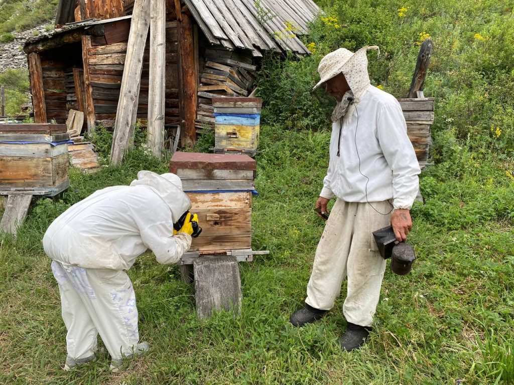 Виктор Баталов называет себя «учеником улья». Он понимает пчёл не по книгам, а по долгим наблюдениям: как они реагируют на ранние заморозки, какие горные цветы дают лучший мед весной, как влияет миграция стада маралов на опыление долин. Знание передаётся не через интернет, а через поколение — как когда-то в азиатских степях передавали знание о травах.