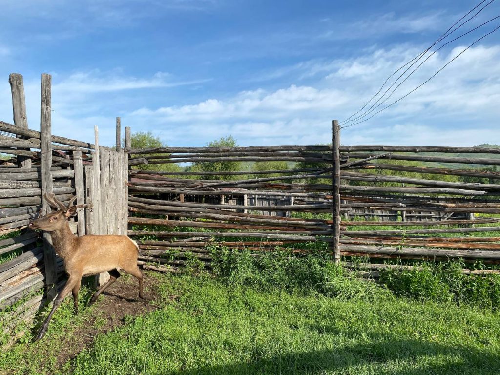Сергей Бердюгин — хранитель другого промысла. Его маралы — благородные олени — живут в полудиком пространстве. Это не ферма в привычном понимании: ограждения минимальны, животные большую часть года проводят без укрытий.