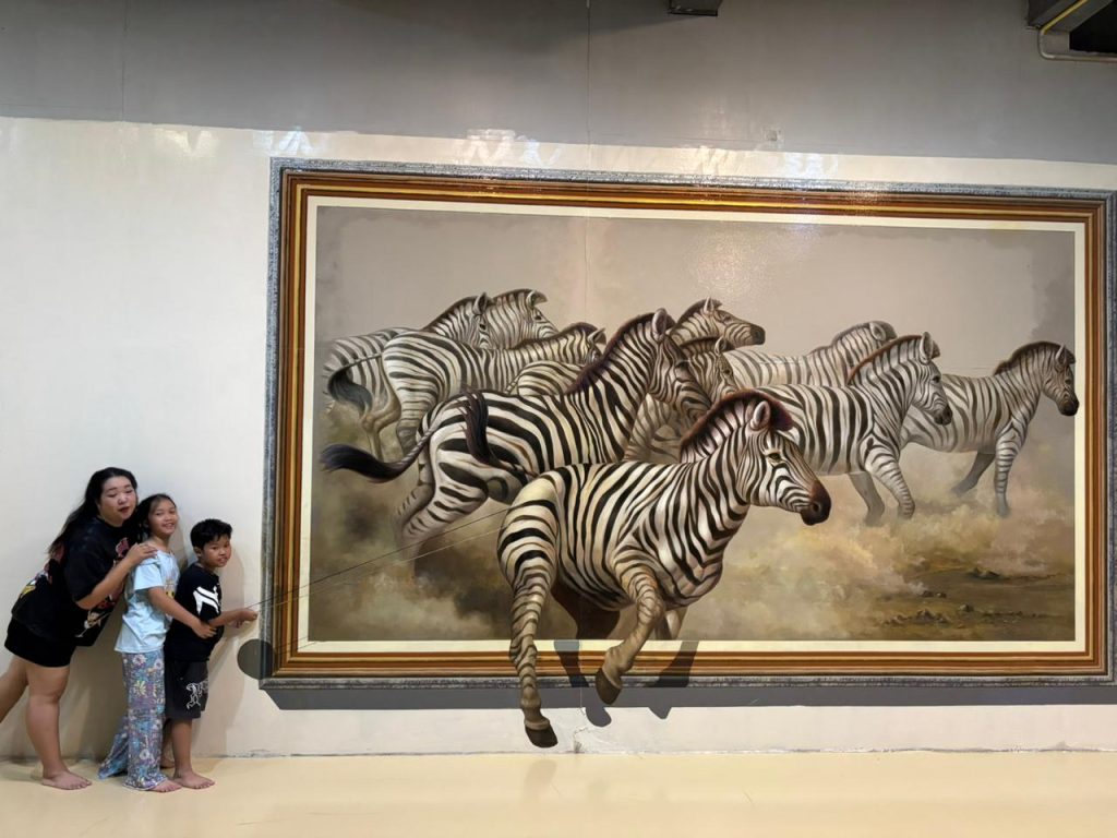 Есть в Паттайе и сюрпризы, о которых знают не все. Один из таких — знаменитый 3D-арт-музей. Это место, где реальность и фантазия смешиваются благодаря экрану телефона. Стоит лишь открыть камеру — и картины начинают жить: животные «выпрыгивают» из стен, водопады текут, а древние руины превращаются в сцену для путешественников.