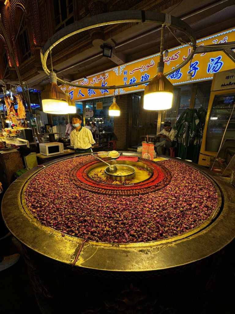 На старых улочках Кашгара рынки — не просто место торговли, а источник культуры и общения. Здесь каждый прилавок рассказывает свою историю: старинные ковры с узорами, пряности с ароматами востока, медные чайники, изделия из серебра и ювелирные украшения.